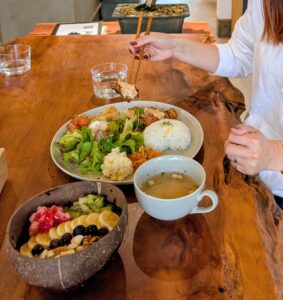 大分県、日田市石井町…この自然豊かな場所でcafeをひらき、二階ではオーナー様の奥様がヨガ教室を開かれる、なんとも素敵な場所に庭とバレルサウナを置きたいと思っていまして…田主丸のモデルサウナガーデンに足を運んでくださりご相談をいただいたのが昨年夏でした。私たちも完成を心待ちにしていました。訪問させていただく度に少しずつカタチとなってついにcafeとヨガ教室をオープンされました。お昼には連日多くのお客さんで賑わい時間を忘れるほど居心地の良さに皆さん非日常を満喫されてあるご様子。体に優しいスムージーやアサイーボール、ランチプレートやデザートなどどれも美味しくいただくことができまる ogogorostyleさん。